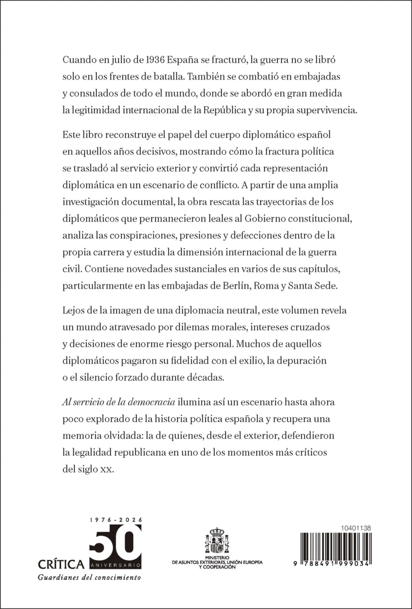 Este libro reconstruye el papel del cuerpo diplomático español, mostrando cómo la fractura de 1936 se trasladó también a las embajadas y consulados en todo el mundo, donde se libró una batalla decisiva por la legitimidad internacional de la República. A...