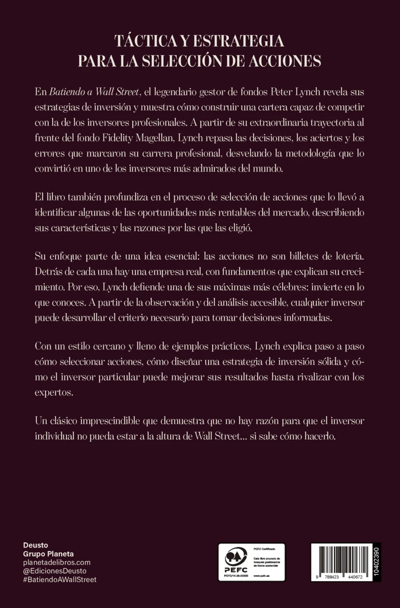 El legendario gestor de fondos Peter Lynch explica en esta obra sus claves de inversión y cómo conseguir la mejor cartera de inversiones posible.