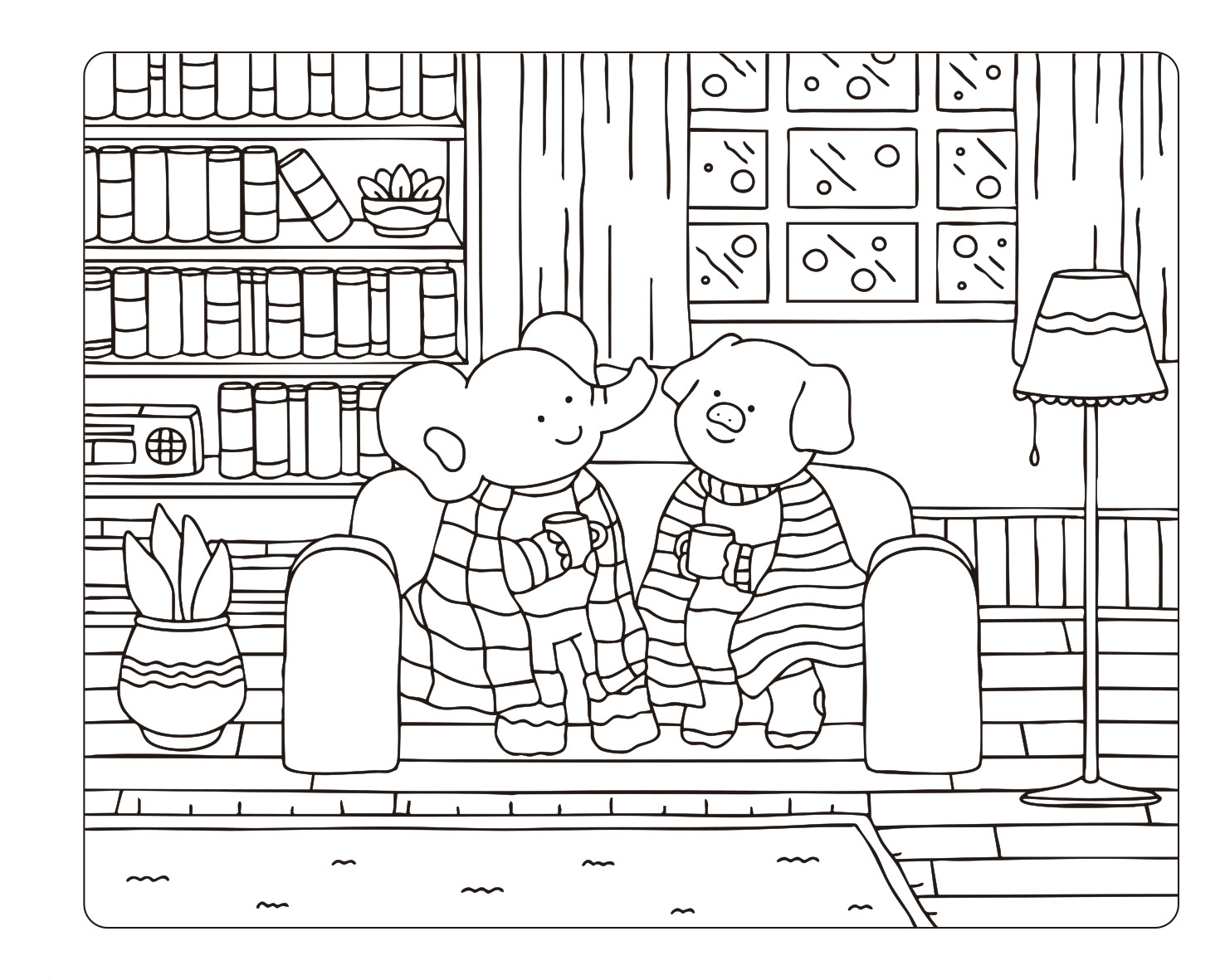 Descubre encantadoras ilustraciones diseñadas para despertar tu imaginación y llenarte de calma. Animales adorables, rincones acogedores y escenas mágicas te esperan para que disfrutes del placer de colorear.