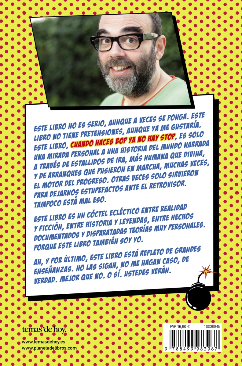 Este libro no es serio, aunque a veces se ponga. Este libro no tiene pretensiones, aunque ya me gustaría. Este libro, Cuando haces Bop ya no hay stop, es SOLO una mirada personal a una historia del mundo narrada a través de estallidos de ira, más humana que divina, y de arranques que pusieron en marcha, muchas veces, el...