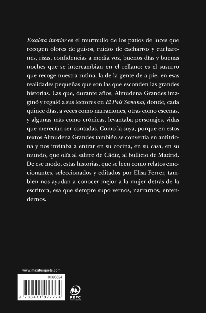 Escalera interior es el murmullo de los patios de luces que recogen olores de guisos, ruidos de cacharros y cucharones, risas, confidencias susurradas a media voz, buenos días y buenas noches que se intercambian en el rellano; es el murmullo que recoge nuestra...