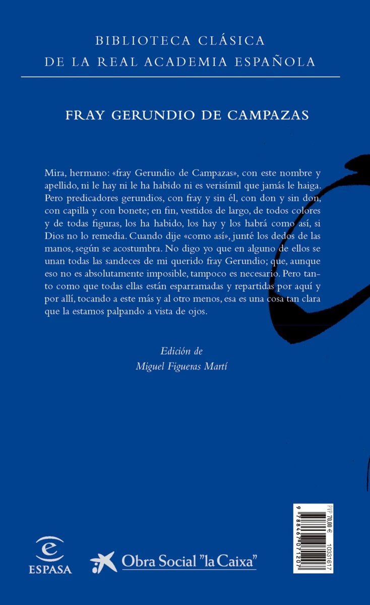 José Francisco de Isla (Vidanes, León, 1703), de familia hidalga, hijo de un miembro de la administración, decidió en su juventud ingresar en la orden de los jesuitas, a la que dedicó lo mejor de su talento y de su compromiso. Estudió Artes en Santiago de Compostela y una vez bachiller ingresó en la Universidad de Salamanca para graduarse en Teología. Se ordenó sacerdote en 1727 y dedicó su actividad a la docencia y sobre todo a la prédica, en plazas como Medina del Campo, Valladolid, Segovia, Pamplona, San Sebastián o Salamanca. Al mismo tiempo desarrolló una actividad constante como traductor, epistológrafo y prosista. Una vez retirado de la enseñanza, se instaló en Villagarcía de Campos, donde compuso, entre 1754 y 1757, el Fray Gerundio de Campazas, cuya Primera parte, publicada en 1758, tuvo un éxito instantáneo y generó una inmediata polémica acompañada de denuncias a la Inquisición, lo que acarreó la prohibición de reimprimirla y de publicar la Segunda, que no vería la luz hasta 1768 y de forma clandestina. Al decretarse en 1767 la expulsión de los jesuitas, Isla partió al exilio con sus compañeros, primero a Córcega y luego a Bolonia, donde falleció en 1781.