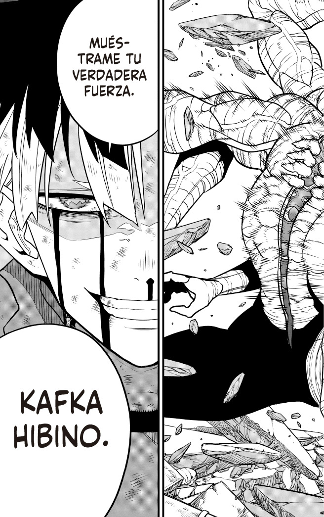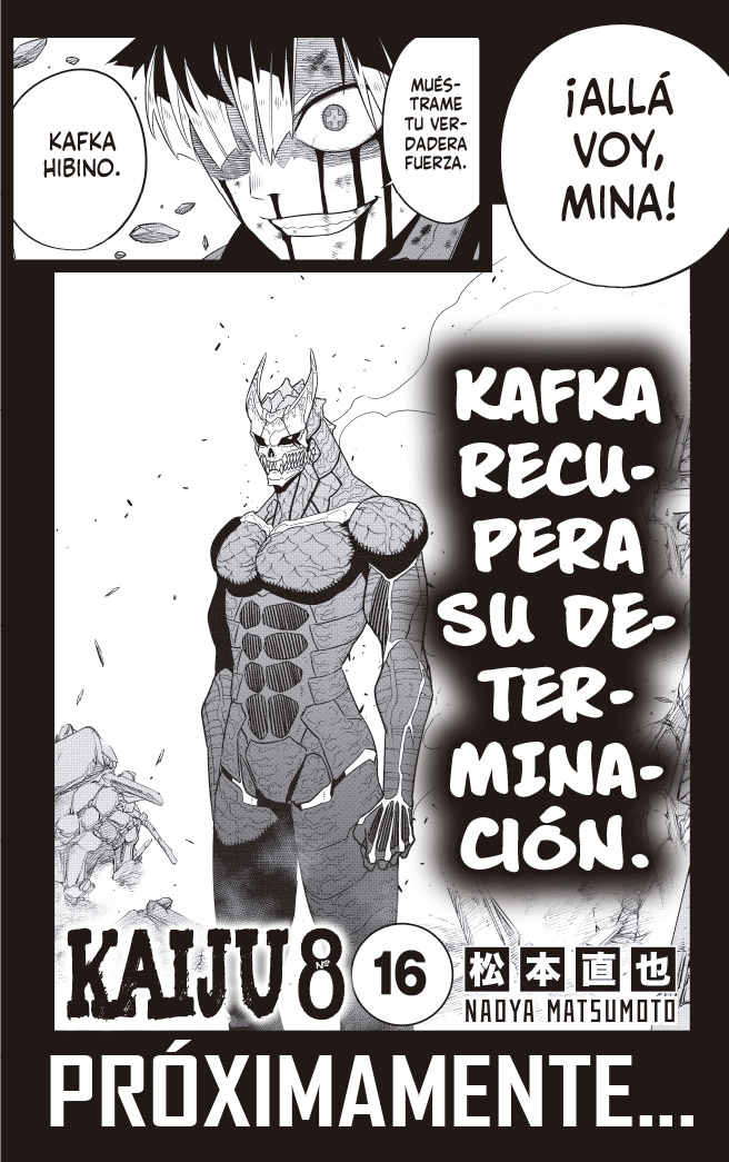 Cumpliendo la promesa de su infancia, Kafka lucha junto a Mina Ashiro para eliminar al noveno Kaiju. En medio de una feroz batalla, Kafka desata su poder como octavo y logra romper el escudo del Noveno, atravesando su núcleo. Pero entonces del interior de noveno surge la fuente de todo su poder.
