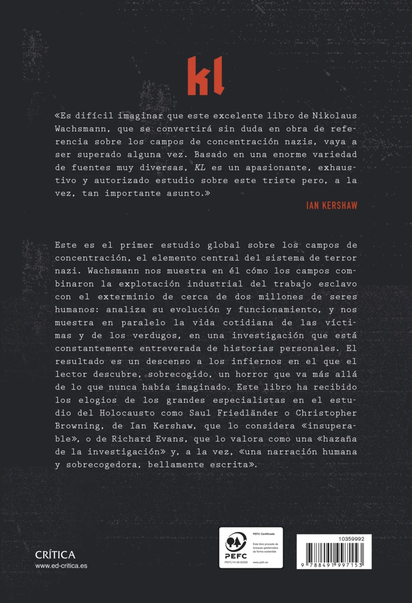Nikolaus Wachsmann ofrece en esta obra histórica de referencia una crónica equilibrada, completa y sin precedentes de los campos de concentración nazis, desde sus comienzos en 1933 hasta su extinción —hace setenta años— en la primavera de 1945. Sobre el Tercer Reich se ha...