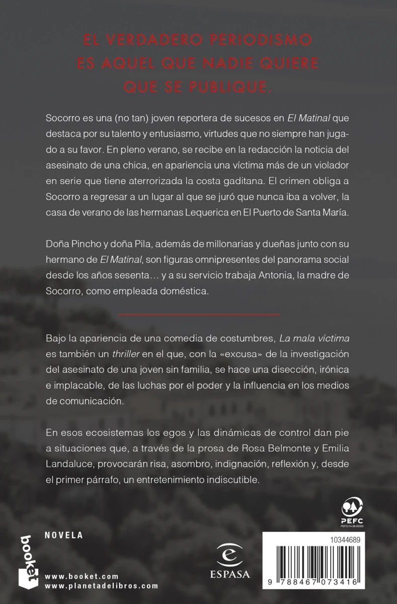 Socorro es una (no tan) joven reportera de sucesos en El Matinal que destaca por su talento y entusiasmo, virtudes que no siempre han jugado a su favor. En pleno verano, se recibe en la redacción la noticia del asesinato de una chica, en apariencia una víctima más de un violador en serie que tiene aterrorizada a la costa...