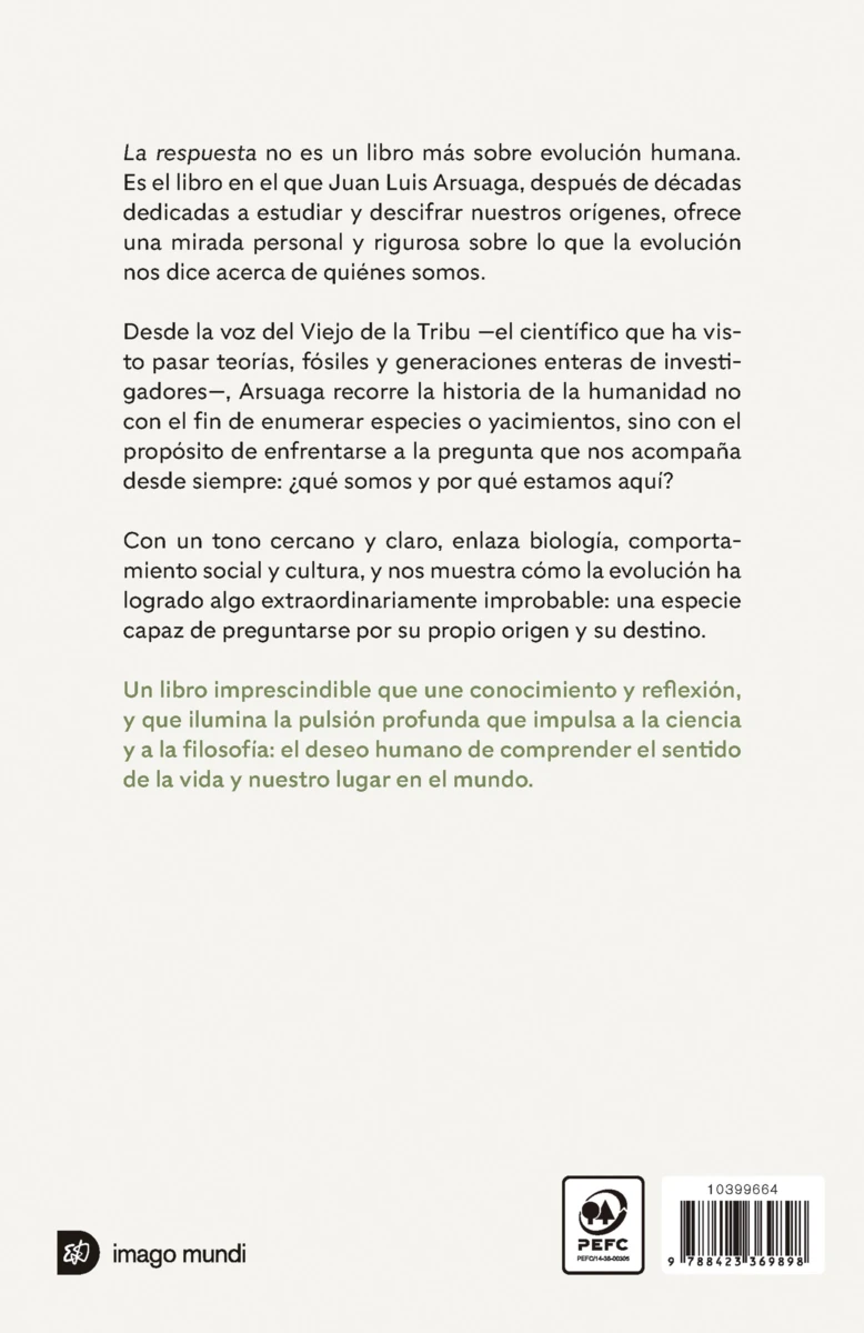 La respuesta no es un libro más sobre evolución humana. Es el libro en el que Juan Luis Arsuaga, después de décadas dedicadas a estudiar y descifrar nuestros orígenes, ofrece una mirada personal y rigurosa sobre lo...