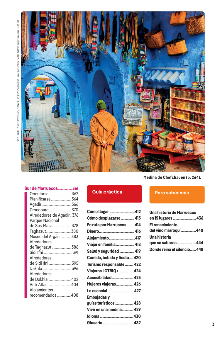 Marruecos se puede vivir de mil maneras y Lonely Planet te ayuda a descubrir la tuya propia. Desde las medinas medievales y los zocos llenos de vida hasta las cumbres del Atlas o la inmensidad del Sáhara, pasando por playas atlánticas, casbas de adobe y ciudades cargadas de historia, aquí encontrarás la información clave para diseñar el viaje que quieres hacer.