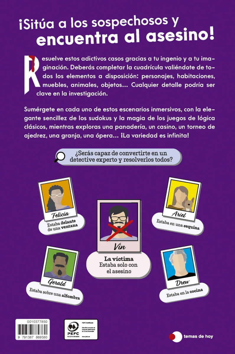Resuelve estos adictivos casos gracias de tu ingenio e imaginación. Deberás completar la cuadrícula valiéndote de todos los elementos a tu disposición: personajes, habitaciones, muebles, animales, objetos… Cualquier...