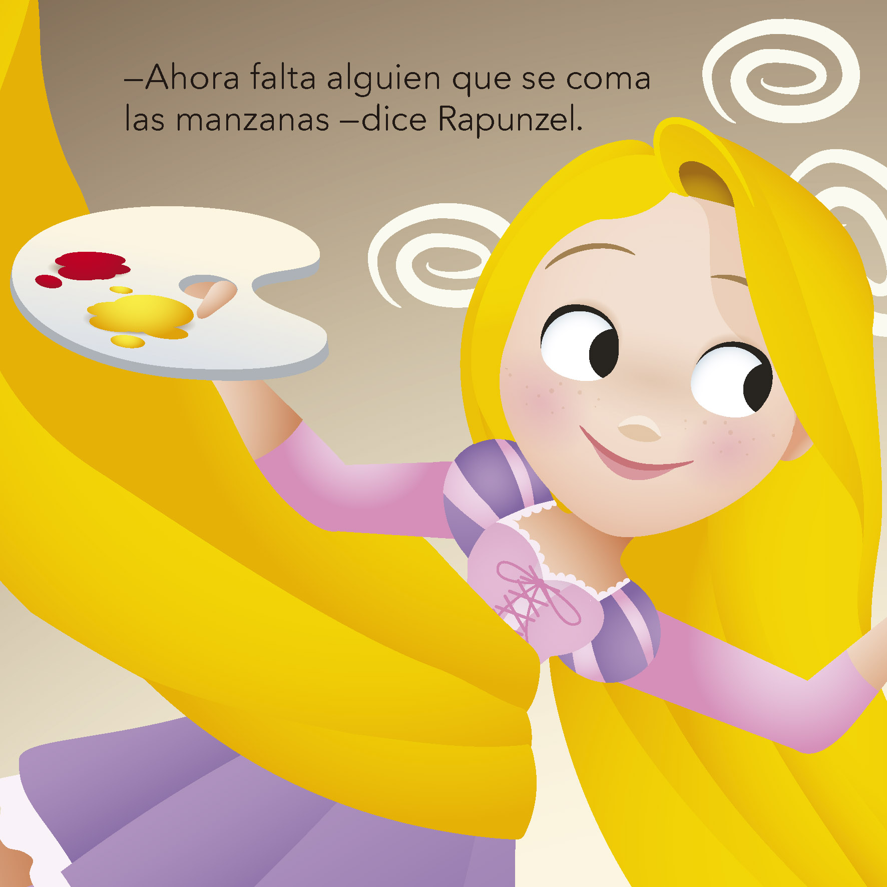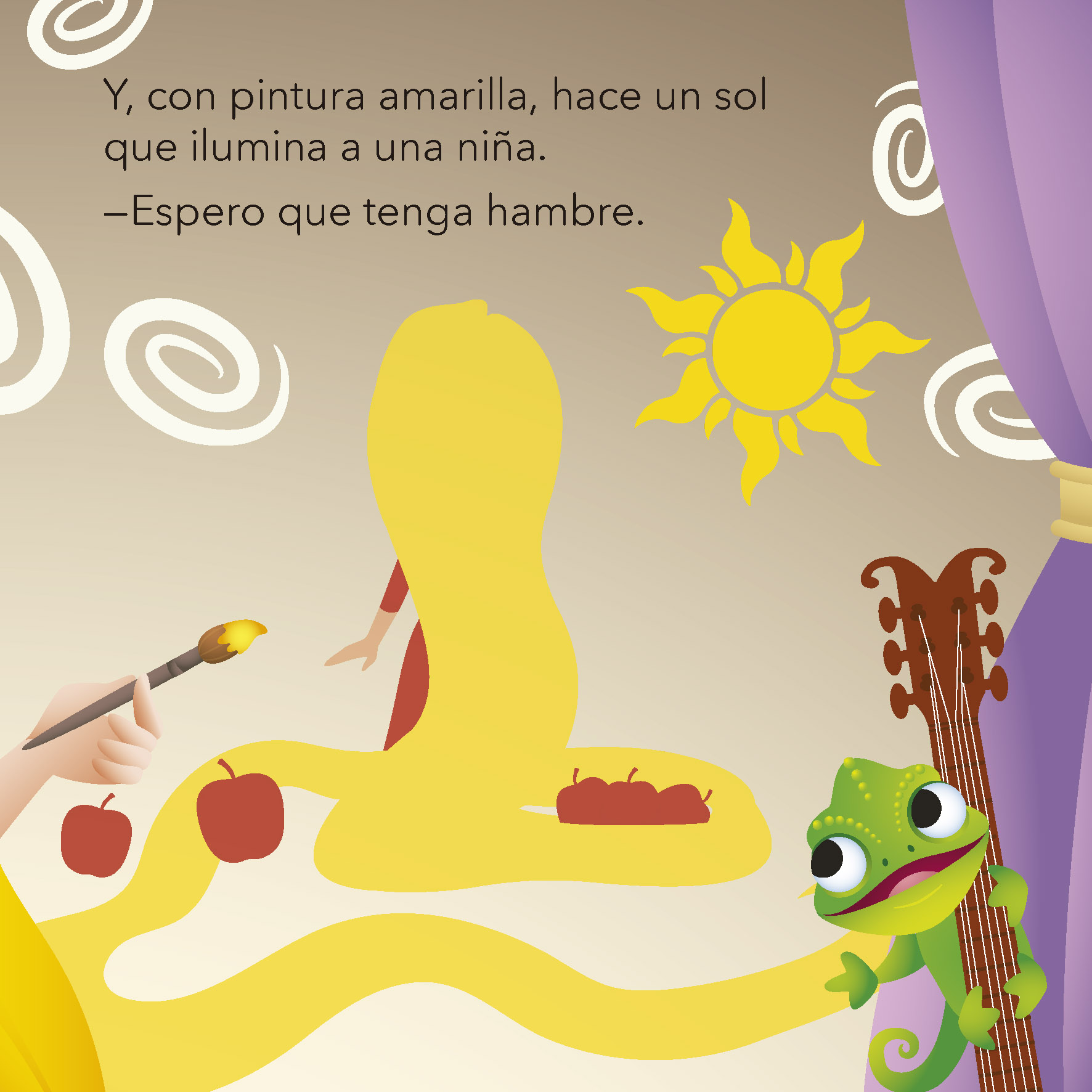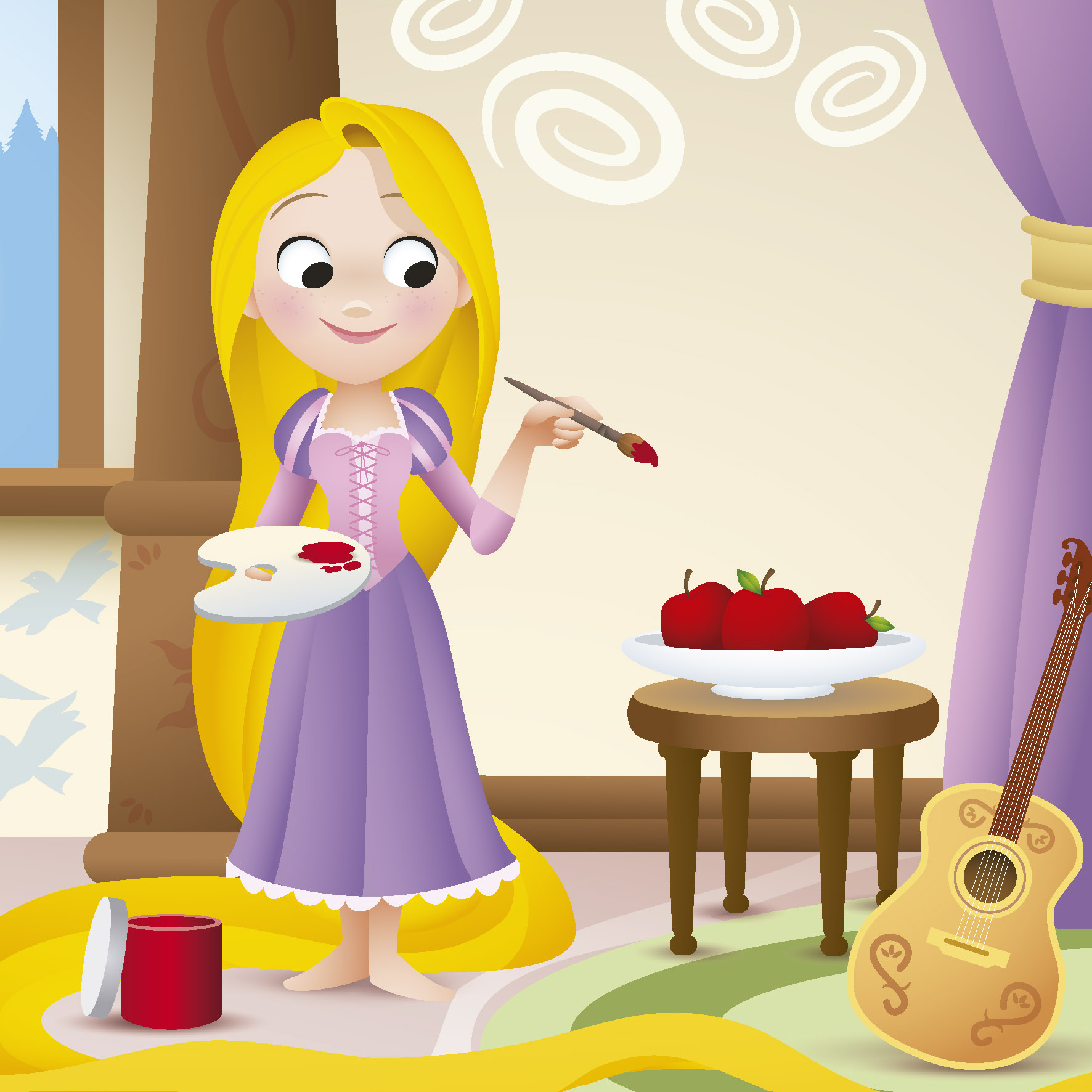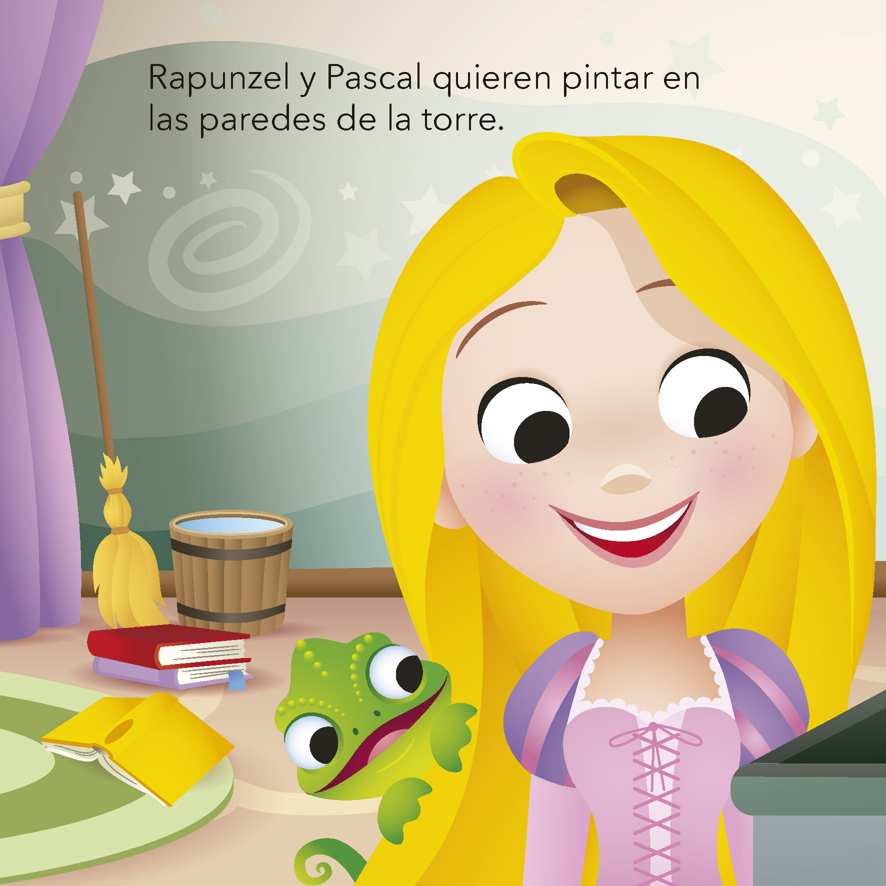Rapunzel y Pascal quieren pintar las paredes de su torre con un montón de dibujos. ¿Qué colores elegirán? Rojo para las manzanas, azul para las flores… ¡Seguro que les quedará precioso!