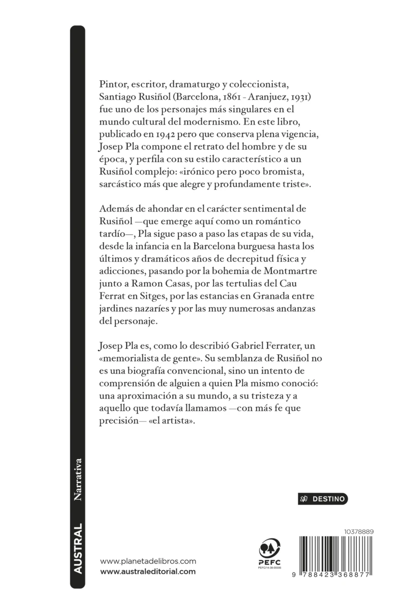 Una biografía poco convencional de Santiago Rusiñol, uno de los personajes más singulares del modernismo, contada por el mejor observador de su tiempo.