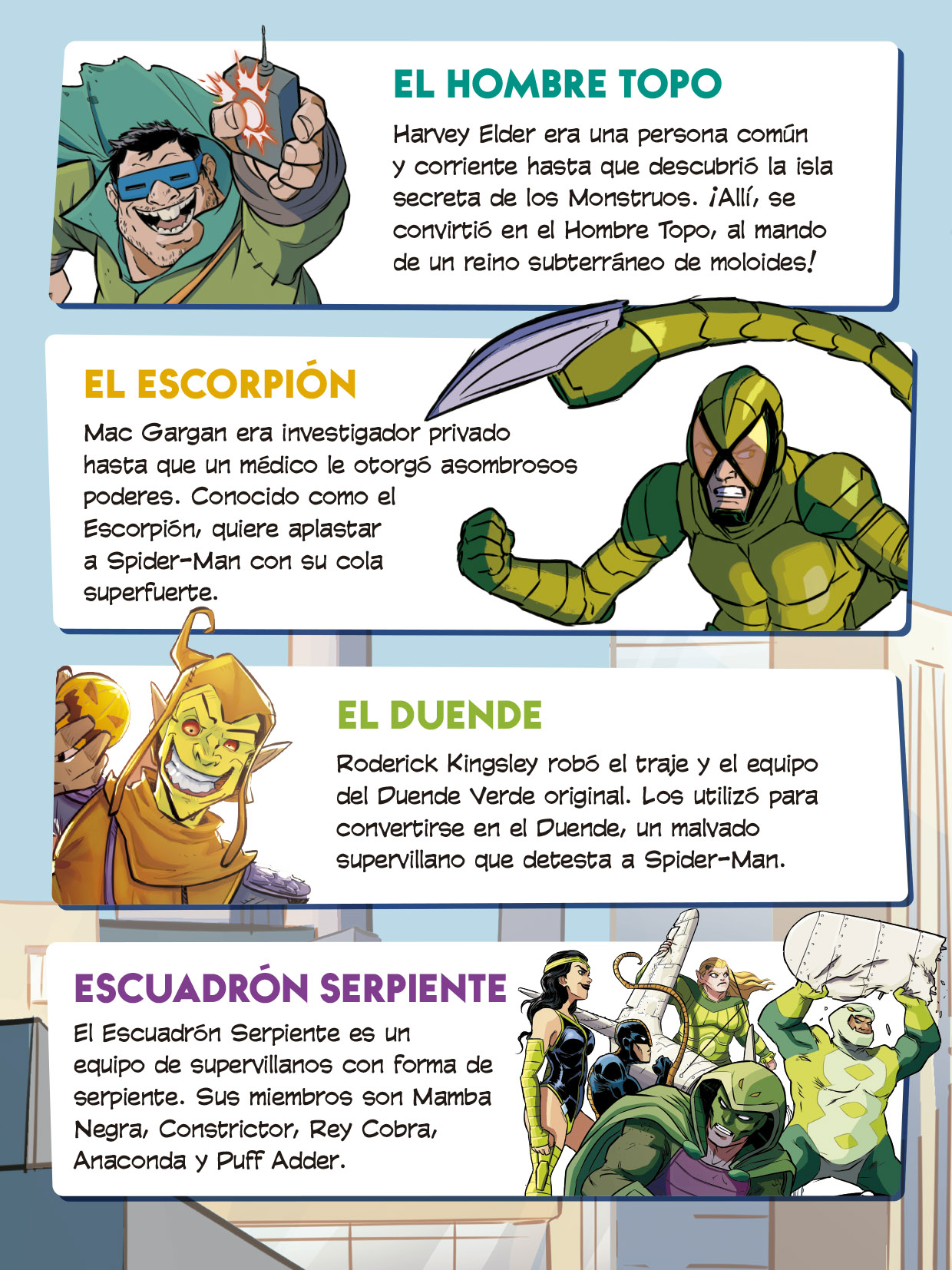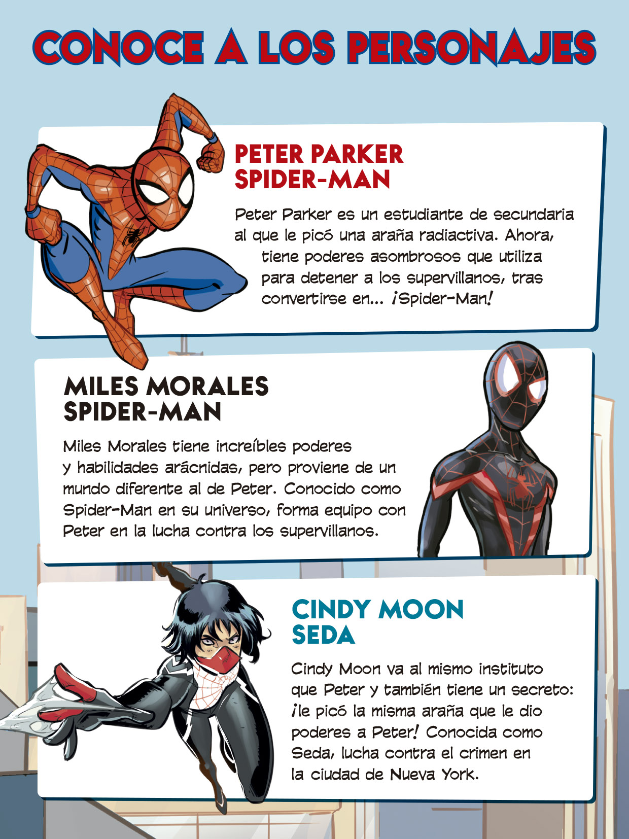 Acompaña al héroe trepamuros y forma equipo con los Cuatro Fantásticos, Miles Morales y otros superhéroes en seis aventuras trepidantes.