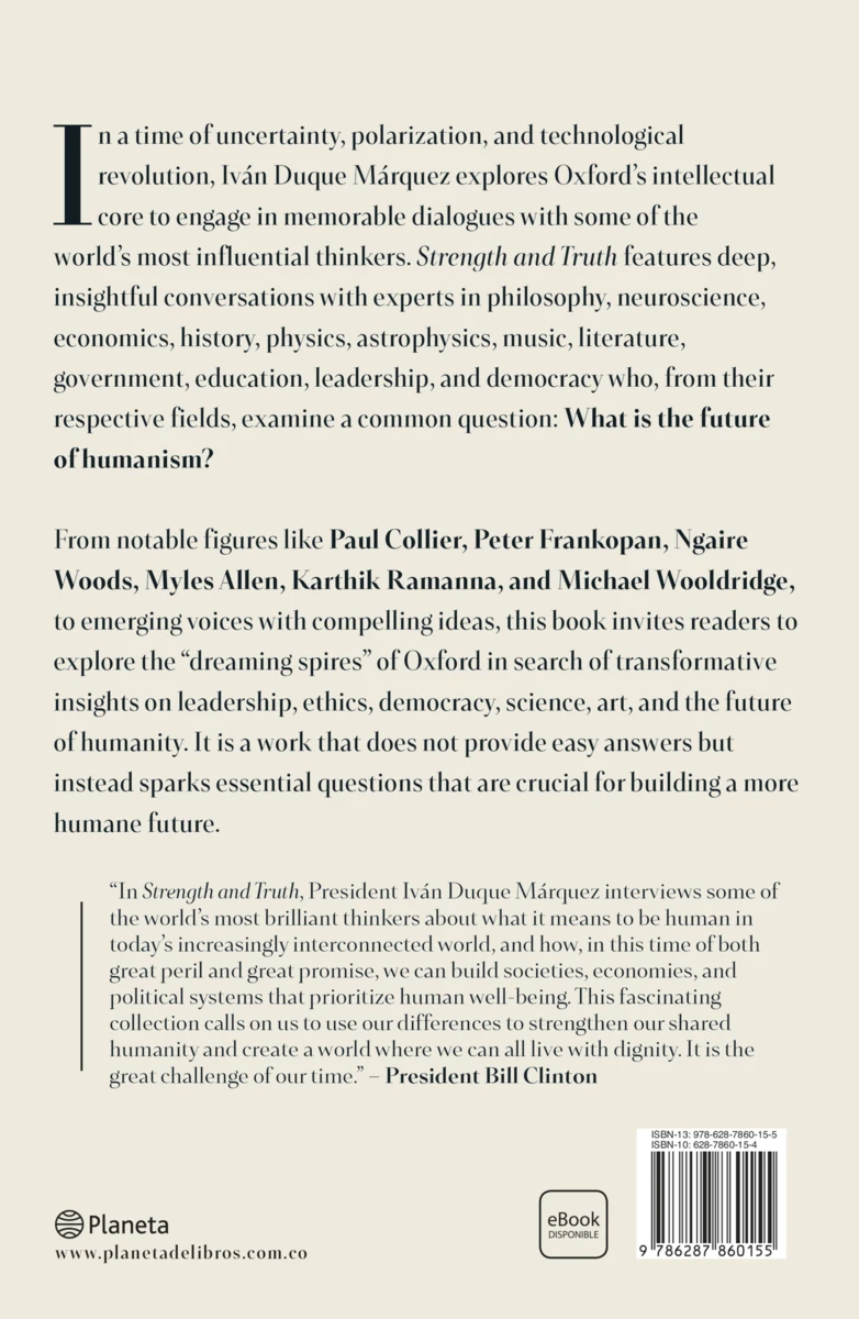 In a time of uncertainty, polarization, and the technological revolution, Iván Duque Márquez explores Oxford’s intellectual core to engage in memorable dialogues with some of the world’s most influential thinkers. Strength and Truth features...